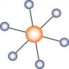 Rueda: Altamente centralizada, en el cual un individuo monopoliza la capacidad de conducción de los flujos comunicacionales